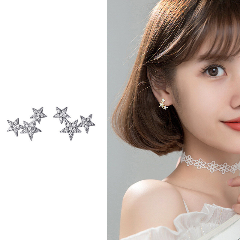 s925 sterling silver cute star rhinestone earrings