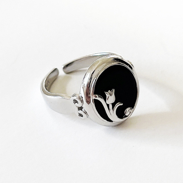 925 sterling silver unique fashion black agate ring
