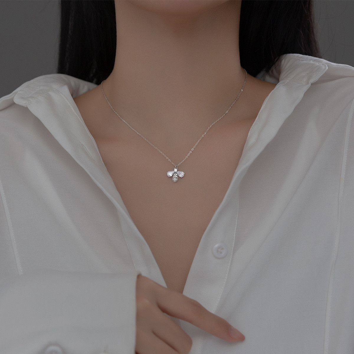 s925 sterling silver rhinestone heart women chic necklace