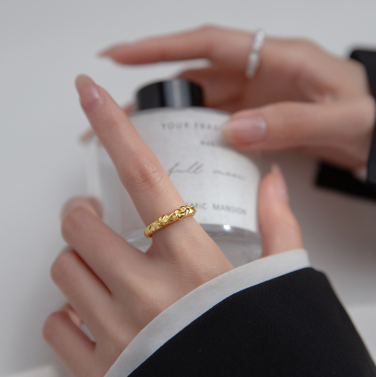 s925 sterling silver wrinkled unique ring